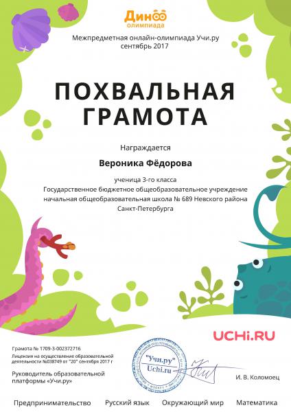 Государственное бюджетное общеобразовательное учреждение начальная общеобразовательная школа № 689 Невского района Санкт-Петербурга